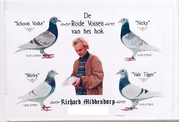 In 1993 heb ik mijn eerste Rode Vossen gekocht, rechtstreeks bij Frederikshof. Hierbij was ook een zoon van de Vale Tijger, en broer van Rooie Appie. Ik noemde hem ook Vale Tijger, het werd mijn oogappel en lieveling. Hij was een goede kweker, zijn kleinzoon won een 6 e plaats op Peronne, met ruim 10.000 duiven. In 1998 had ik zeven kleinkinderen van Vos den Bijter en Schoon Voske. Een mooie stam. Helaas heb ik door privéomstandigheden eind 1998 alles moeten verkopen. |